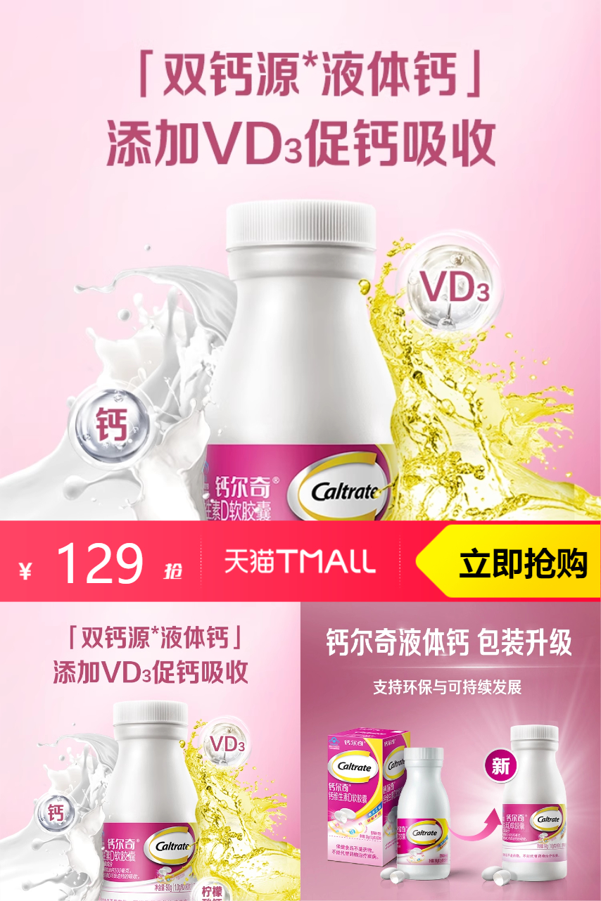 推荐:钙尔奇维D液体钙90粒*3瓶+28粒