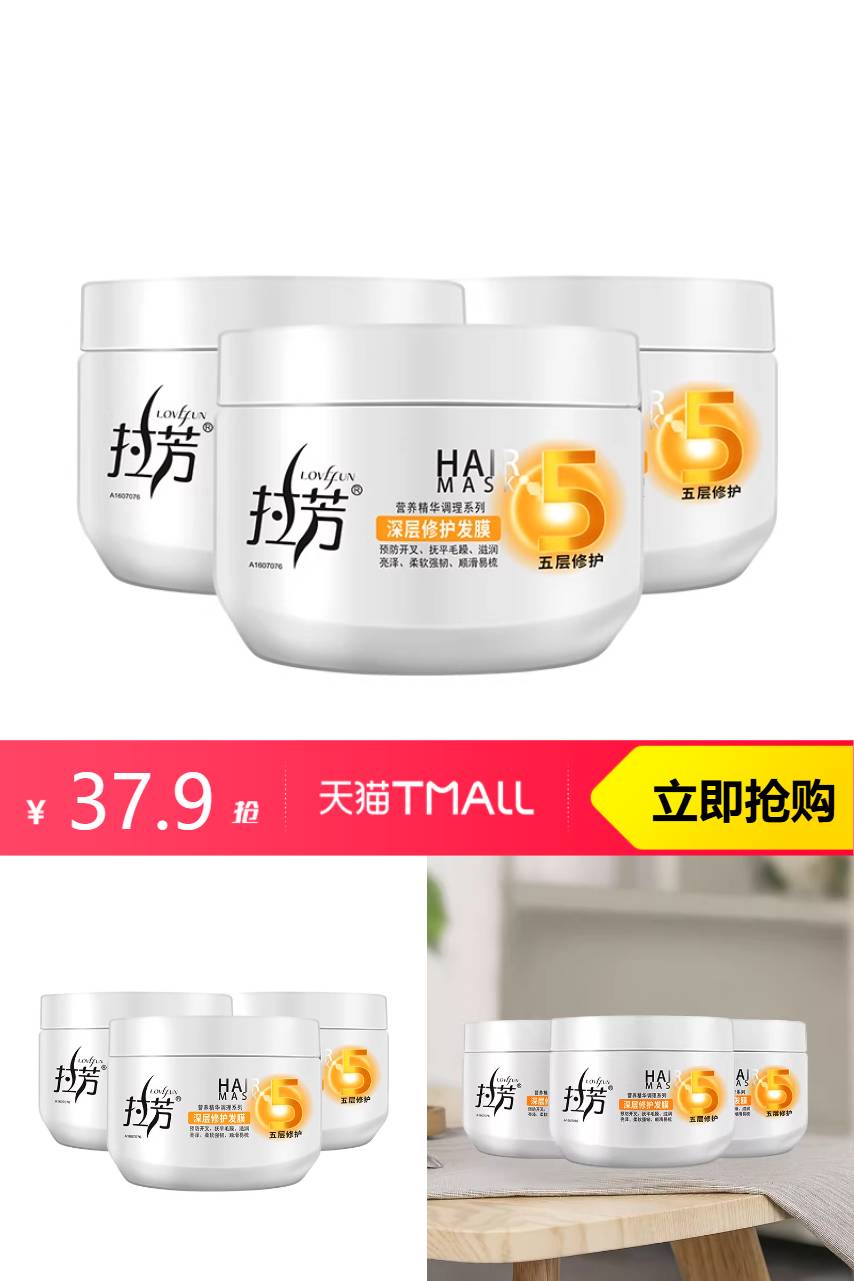 【官方立减9.8元,新客立减1元,88vip减1.9元,淘金币减5.12元,无门槛9折券+其他红包减6.98,到手23.9元】五重护理,专注修护!深层修护,秀发弹润亮泽!补充秀发营养,养护干枯分叉,令秀发充满活力弹韧!拉芳发膜*3护发素顺滑免蒸改善干枯,超赞!