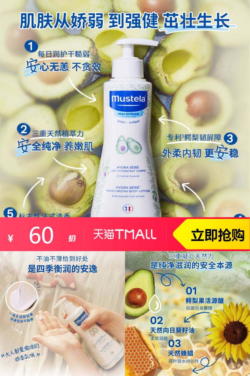 【30%,叠加消费券和淘礼金到手50.58】法国mustela妙思乐贝贝润肤乳专为宝宝娇嫩肌肤设计,采用天然成分,温和无刺激,有效保湿滋润,让宝宝的肌肤更加柔滑健康。作为宝妈宝爸们信赖的品牌之一,妙思乐始终致力于提供最安全、最有效的婴幼儿护理产品。现在就加入购物车,给宝贝好的呵护吧!