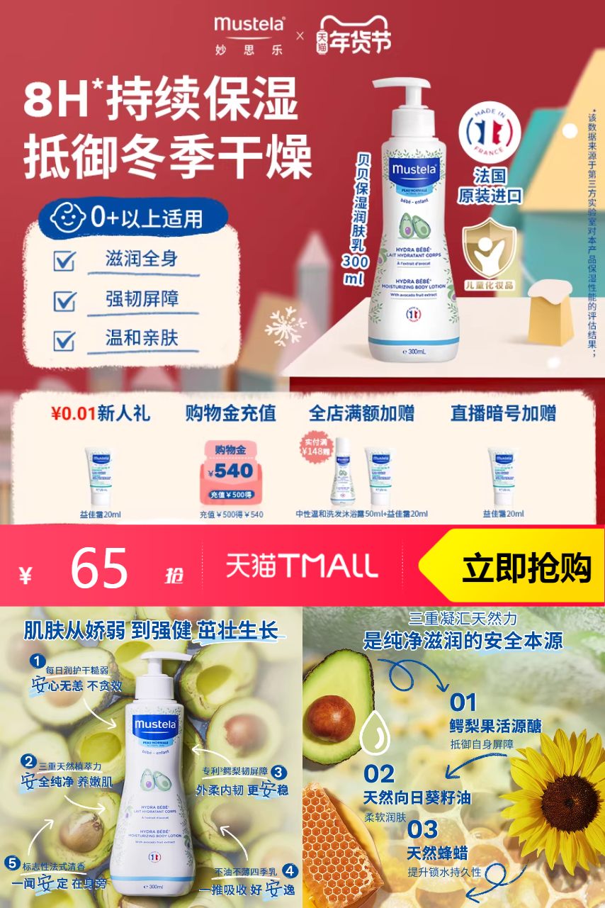 妙思乐 妙思乐贝贝婴儿乳润肤儿童身体乳300ml 85.3元减10.3 商品纠错