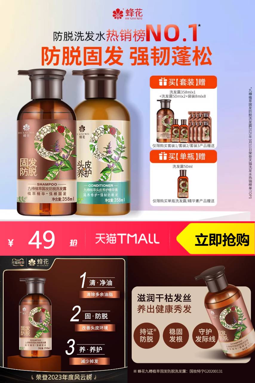 推荐:蜂花防脱洗发水九樽固发精华素洗发露