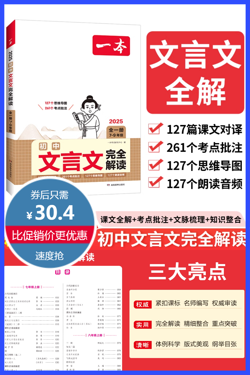 送文言文完全解读基础知识手册!一本初中语文文言文完全解读,127篇课文对译,261个考点批注,127个思维导图,127个朗读音频,课文全解+考点批注+文脉梳理+知识整合,配朗读音频扫码获取
