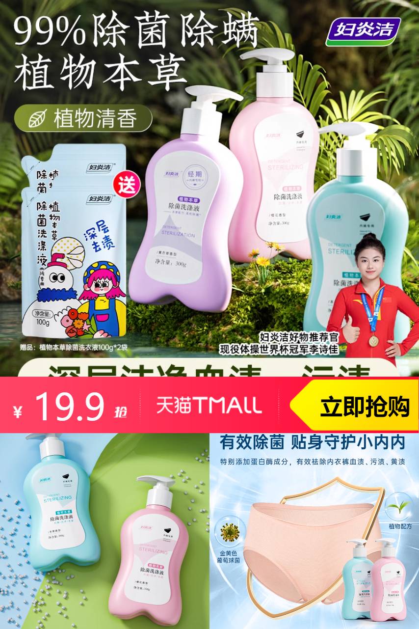 【非88vip:跳转淘金币页面下单,页面价38.8元-5.9立减-13券-2.58淘金币=17.32元,88vip95折到手16.32元】妇炎洁内裤清洗液300g+100mlx2,采用天然植物配方,温和不刺激,有效去除异味和细菌~