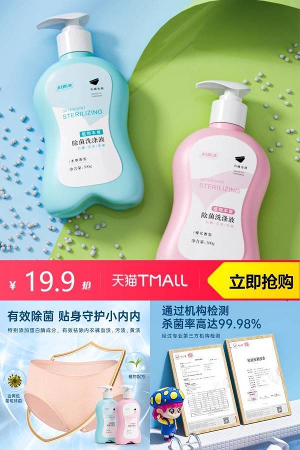 推荐:妇炎洁内裤抑菌洗涤液300g+2袋100