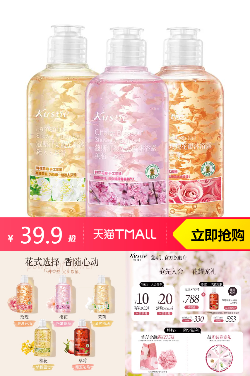 【加赠浴球+沐浴露袋包*5!详情页点淘金币加购,有限时淘金币可以抵扣6.11,叠加淘金币+消费券到手30.3(折算10.1一瓶)!】,多款香型任选,天然花瓣,莹滑肌肤,滋润不紧绷,留香12小时,洗后丝滑透亮~