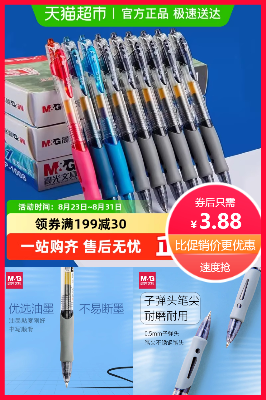 推荐:晨光中性笔按动式水笔学生用按压式3支
