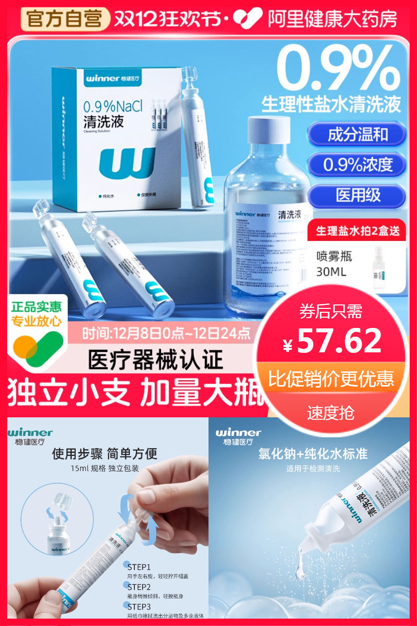 【可签到+1件9折+官方立减7.6元元+88VIP95折抵扣2.8元+满160减20元到手约41元5盒100支,每支仅要0.41元+赠生理盐水喷雾瓶】稳健医用生理性盐水清洗液,多场景可用,洗鼻洗眼、湿敷痘痘、伤口清洁都适用,百分之0.9医用配方,温和不刺激,5盒100支大容量,性价比超高,便携不浪费,速抢