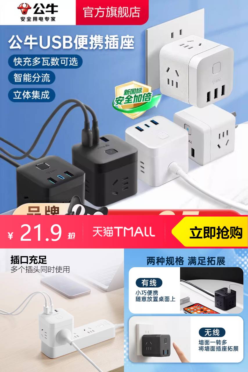 ⭕公牛魔方插座充电插排排插插线板接线板2位