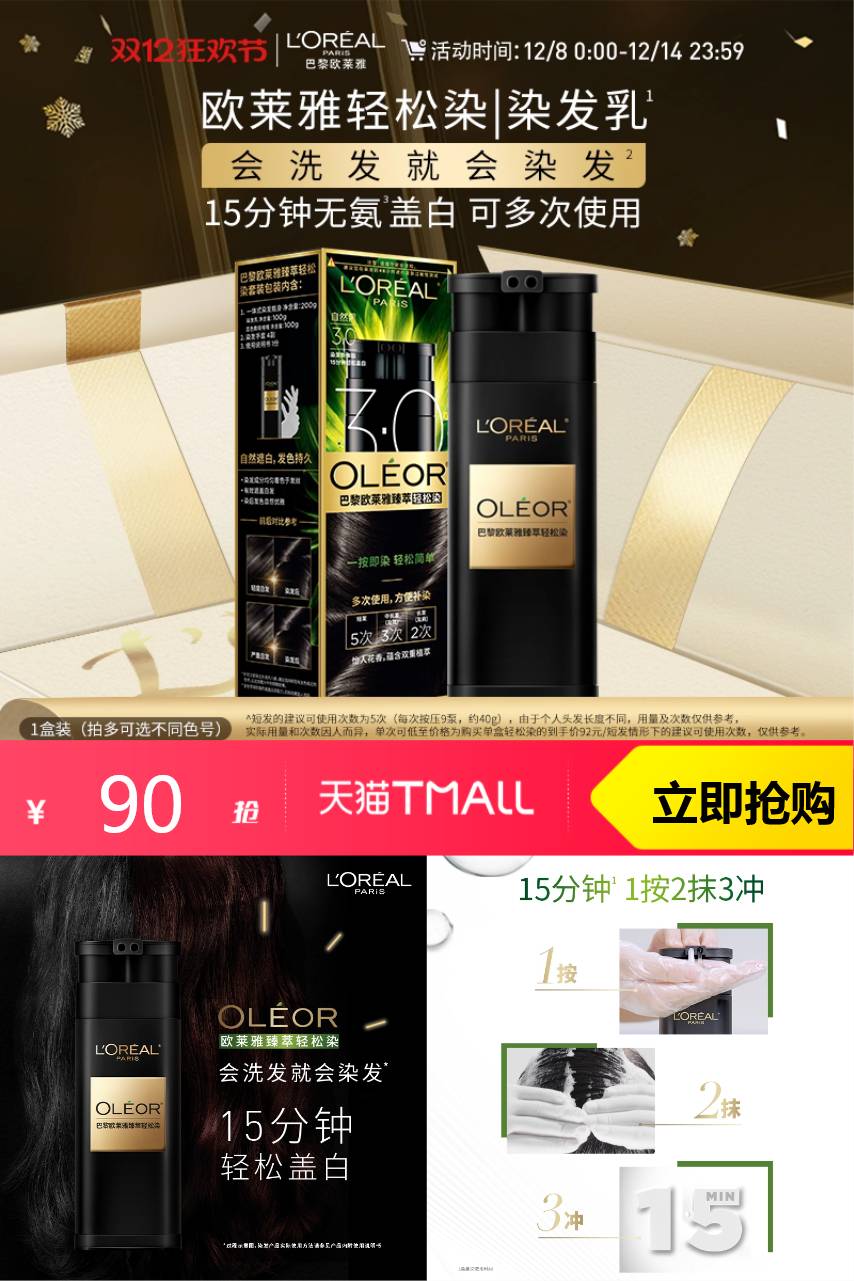 【官方立减14,淘金币抵扣3.27,凑消费券160-20,到手76】欧莱雅轻松染,15分钟无氨盖白,可多次使用,会洗发就会染发!一次双泵,可以多次使用,染发乳+显色啫喱,染发同时还养发~