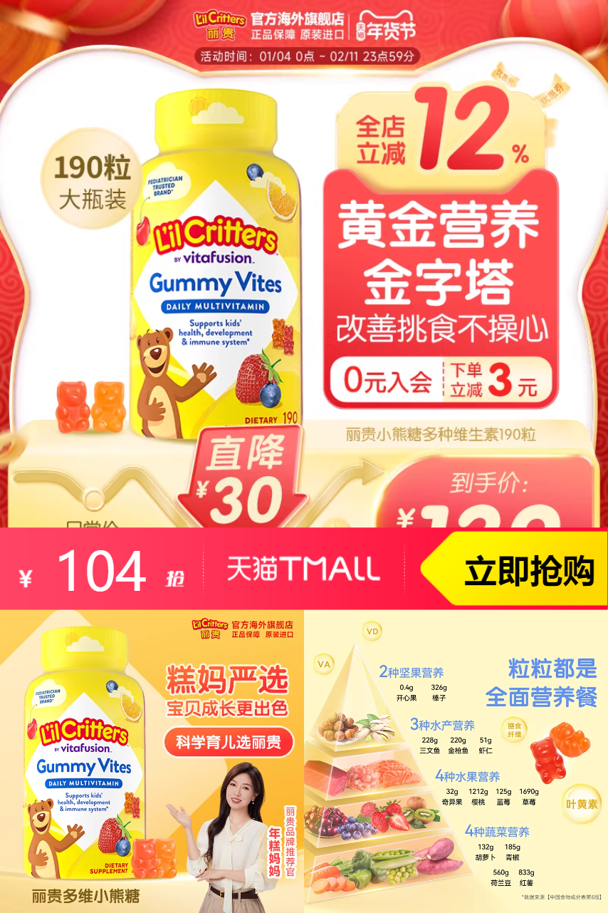 【立减17】丽贵l小熊,宝宝成长好帮手,挑食宝宝也爱,丽贵l小熊来帮忙!D钙D3,助力宝宝骨骼强壮!