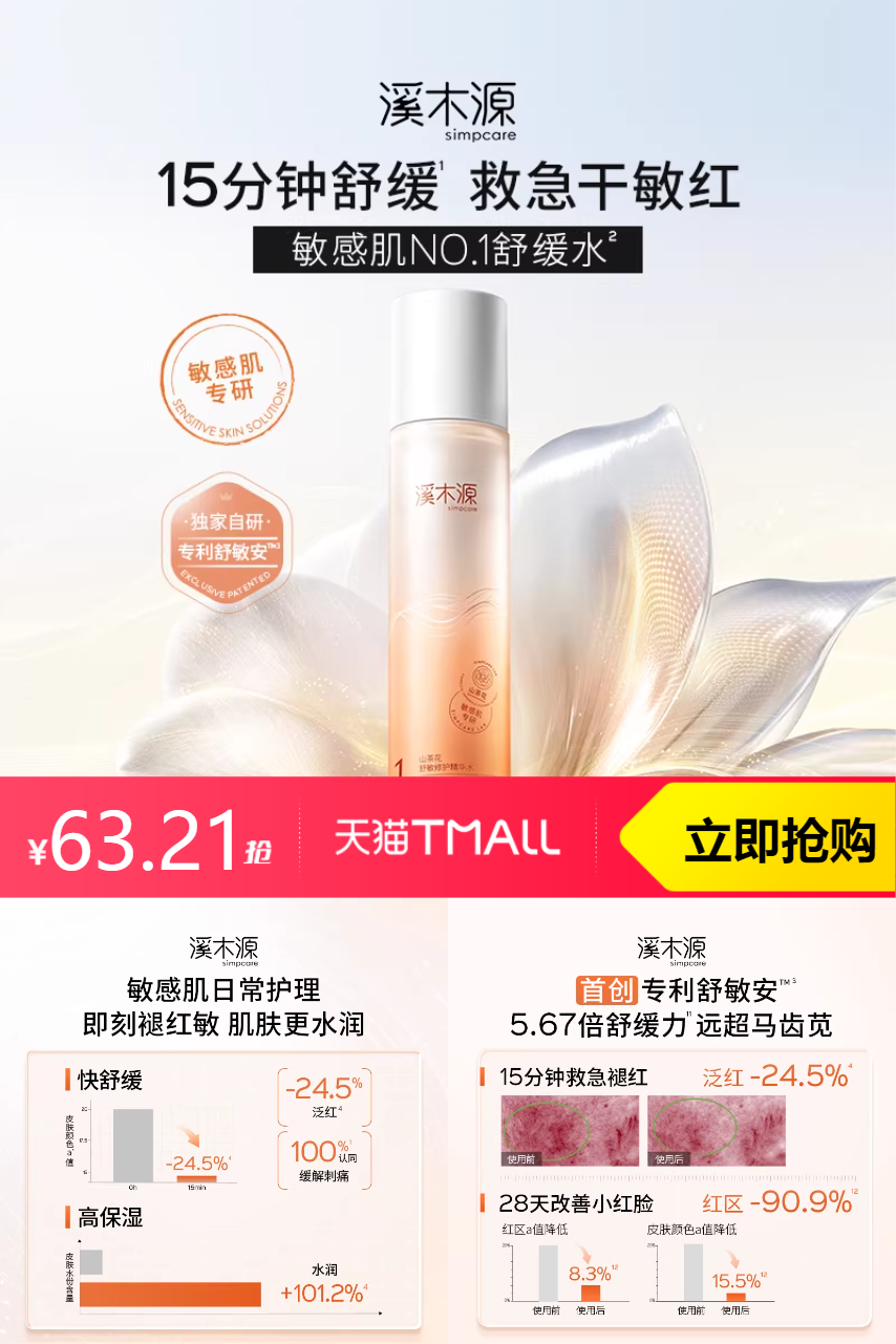 【立减25+限时补贴5.32+淘金币15.47+88vip抵扣3.93+消费券抵扣7.36到手51.92+加赠山茶花水15ml+会员加赠喷雾喷头+24-28限时赠湿敷棉1包】升级舒敏力快速应对敏感,强韧肌肤不易敏~10大无添加,敏感肌放心用!多维沁润,15分钟快速补水,舒敏救急!换季维稳保湿,晒后修护都可!妆前湿敷,后续底妆更服帖!一水多用!