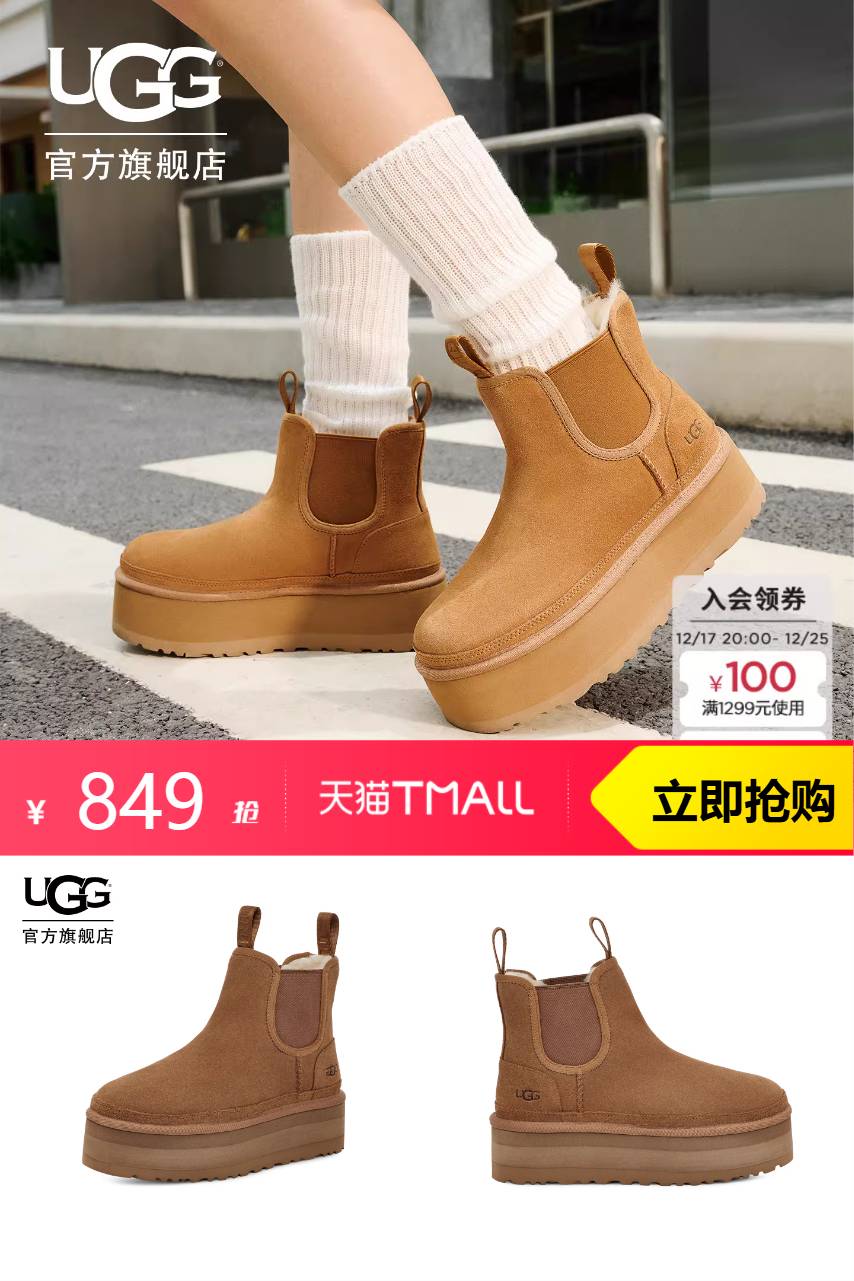 UGG UGG纯色厚底雪地靴烟囱时尚切尔西短靴 1349元减350 商品纠错