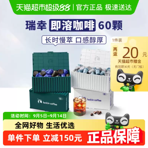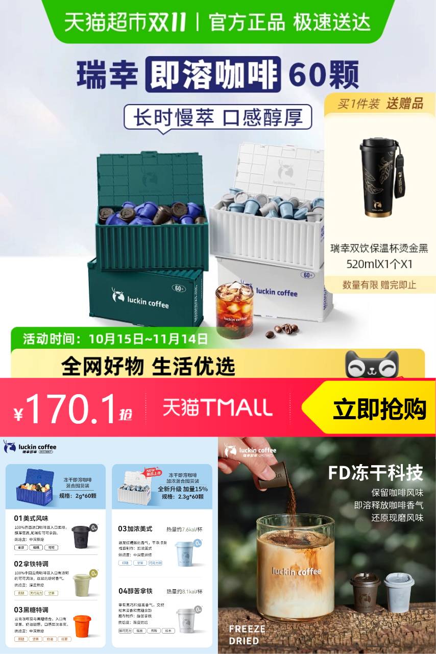 【淘金币页面领取抵扣16.78,88vip减8.51+消费券到手130.33】瑞幸咖啡精品即溶冻干黑咖啡拿60颗,经典/加浓两种风格可选每种风格可冲调出美式、拿铁两款风味更适合小聚分享~