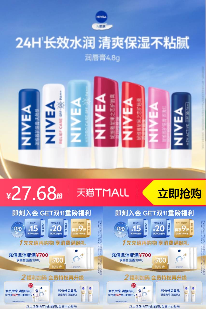 妮维雅 【拍3件33】妮维雅男女士润唇膏滋润 115.2元减2.32 商品纠错