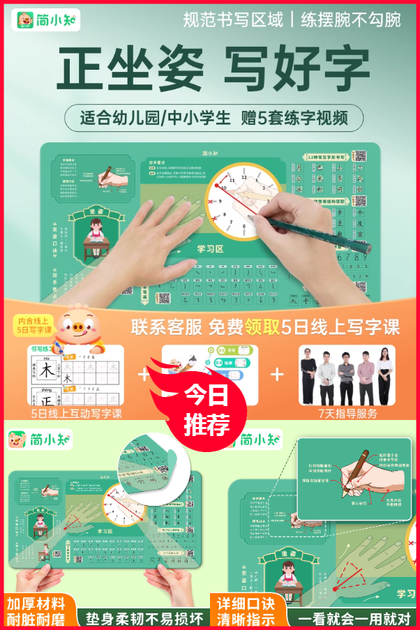 淘金币+优惠券到到手约13元!儿童正姿写字垫,规范书写练字专用软垫,护眼学习垫,防滑设计 书写不移动,加厚材料 书写顺畅,不会戳破纸张,成就好的书写习惯!端正坐姿 规范书写。赠送5套练字视频,一套放在桌面的活字帖。端正写字姿势,解决入门握笔的常见问题。宝妈放心购【运费险】