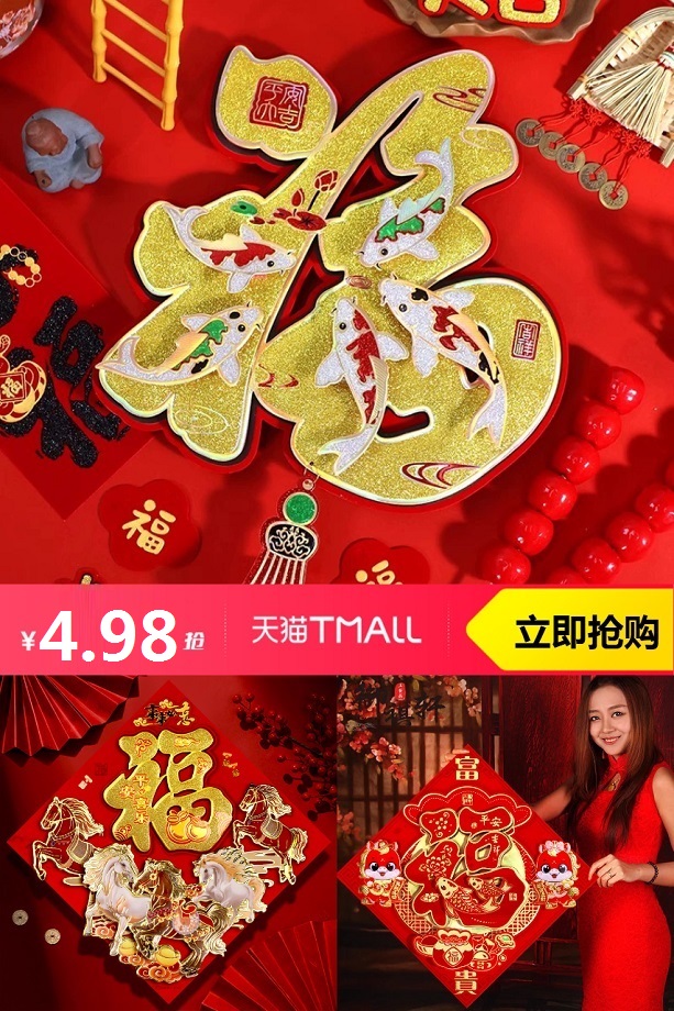 【立减0.82元,首单签到,到手更划算】自带背胶,粘贴方便!采用植绒布材质,精美镂空艺术,剪出精致花纹,立体感更强,造型逼真,更能烘托新年氛围,是新年装饰的好选择~~