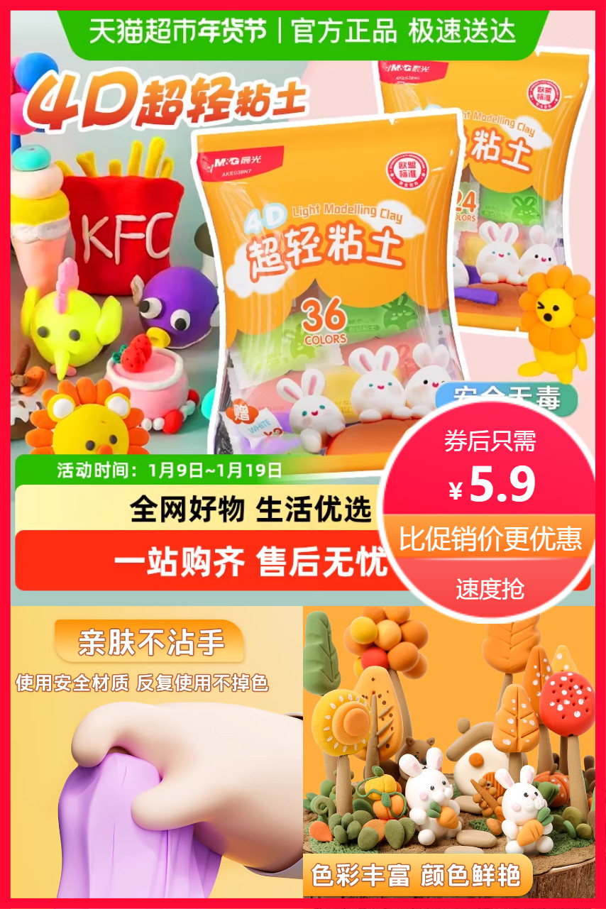 推荐:12色+2包白色晨光4D超轻粘土