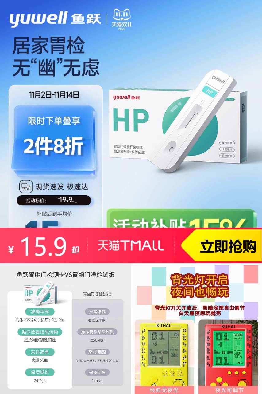⭕鱼跃胃幽门螺螺旋杆菌检测试纸hp试剂盒