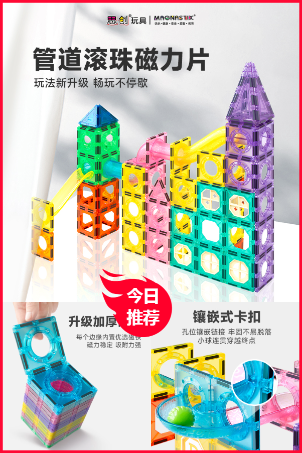 淘金币到手约254元!升级加厚磁芯磁力强劲长久,每个边缘内置优选磁铁磁力稳定 吸附力强,镶嵌式卡扣畅玩不停歇,孔位镶嵌链接 牢固不易脱落小球连贯穿越终点,搭配磁力片构建场景 稳固更清晰,贴纸与磁片相结合,边玩边学更有趣!
