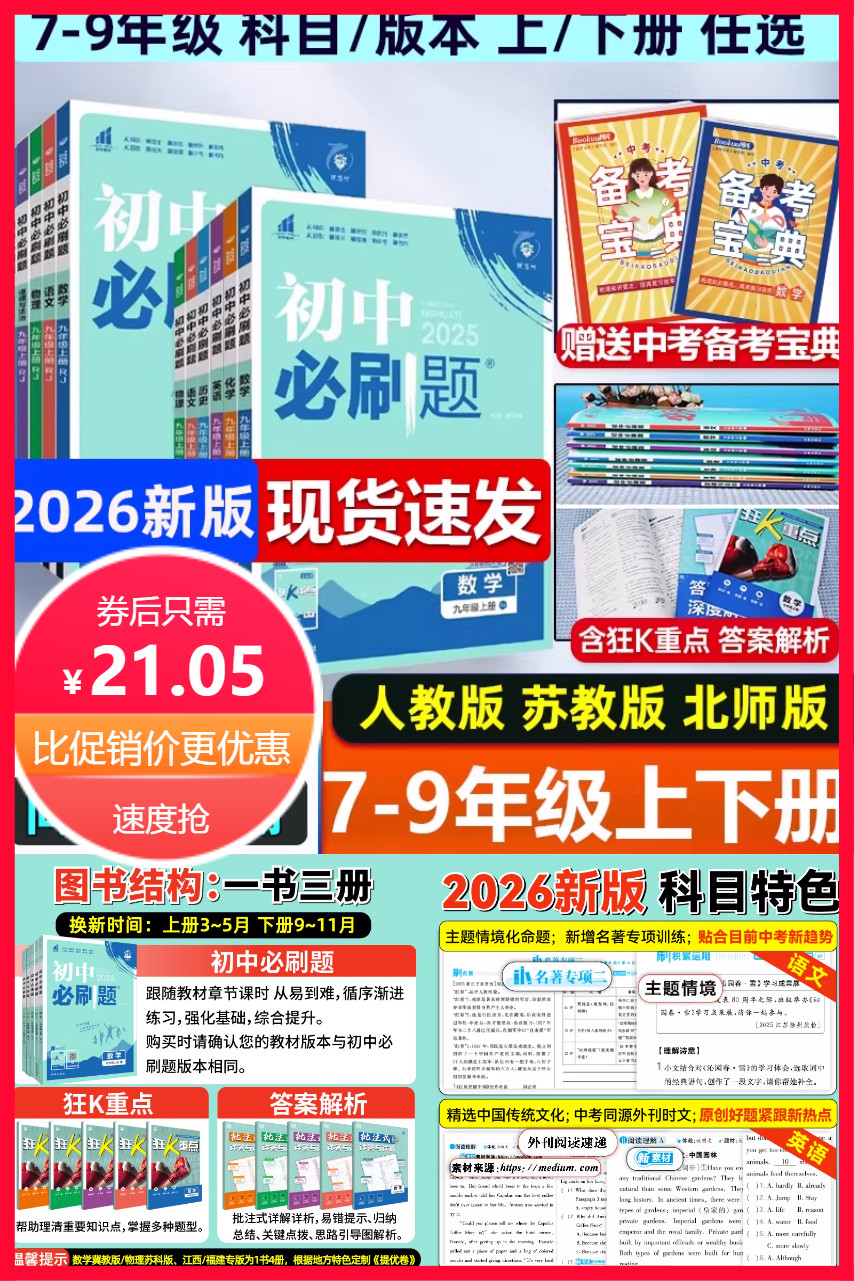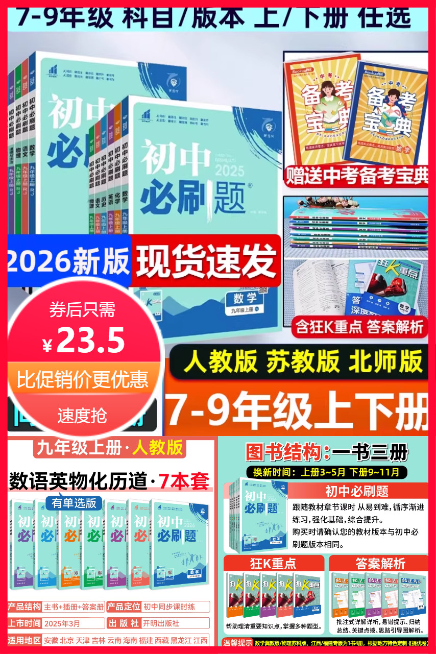您的位置: 选单 > 文体车品 > 2026新版!初中必刷题年级任选