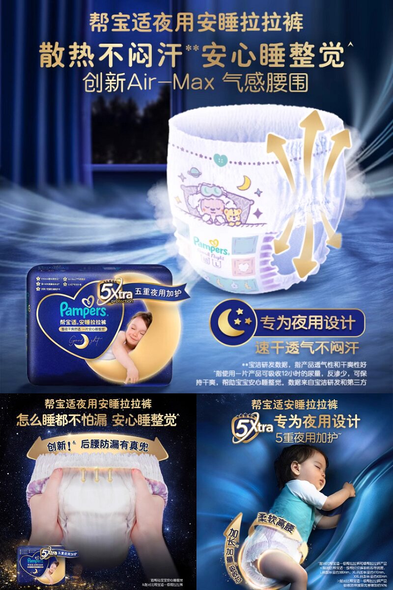 推荐:拍2件!帮宝适安睡拉拉裤M-3XL