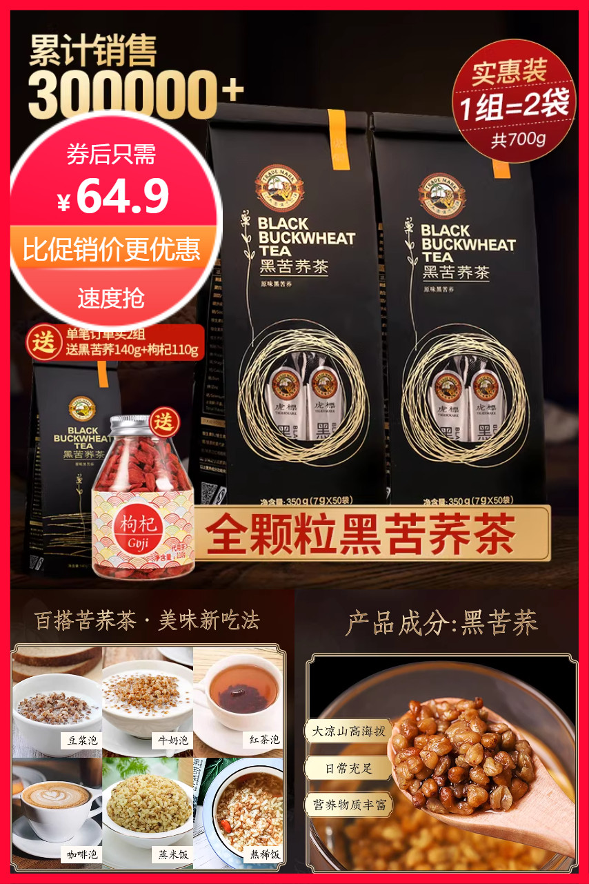 ⭕虎标四川大凉山黑苦荞茶350g*2