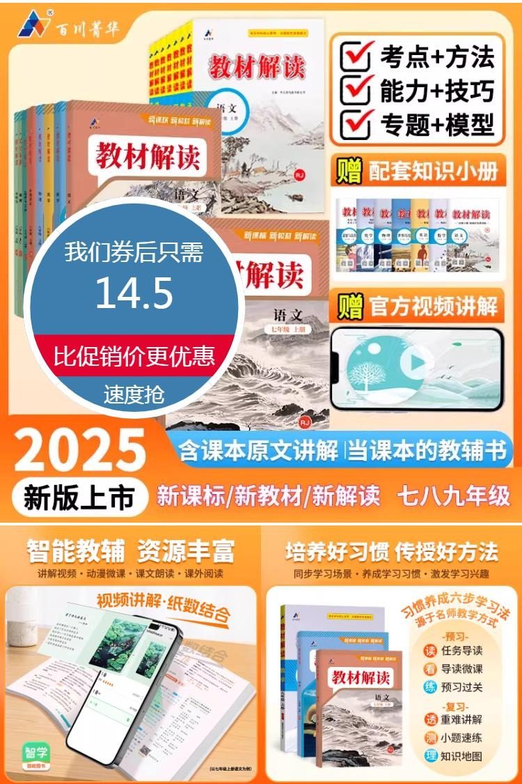 【同步讲解,答案独立成册】初中教材解读,课前预习解教材,课后巩固再提升,自主学习,家长辅导,老师备课,提高学习效率,养成学习习惯,激发学习兴趣!全面的家教老师,官方配套学习工具!