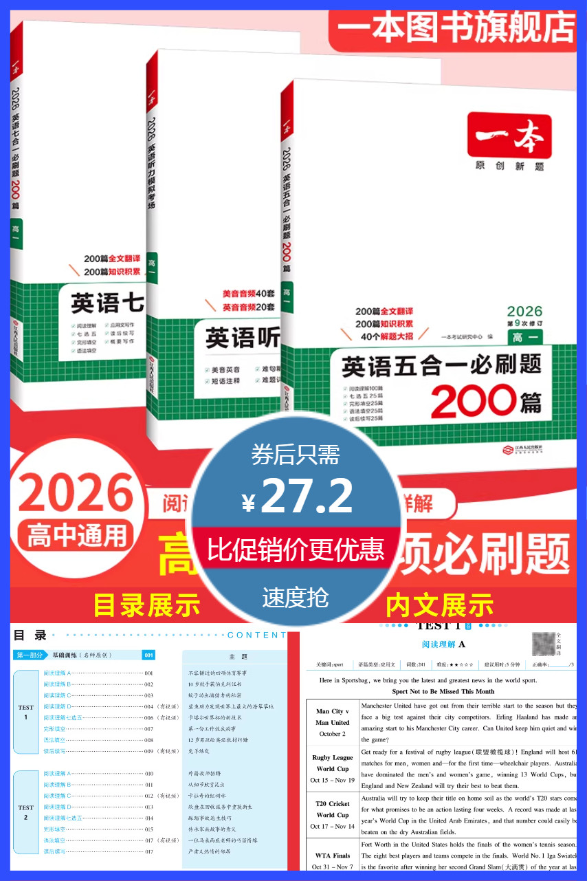 ⭕一本高中英语五合一必刷题200篇
