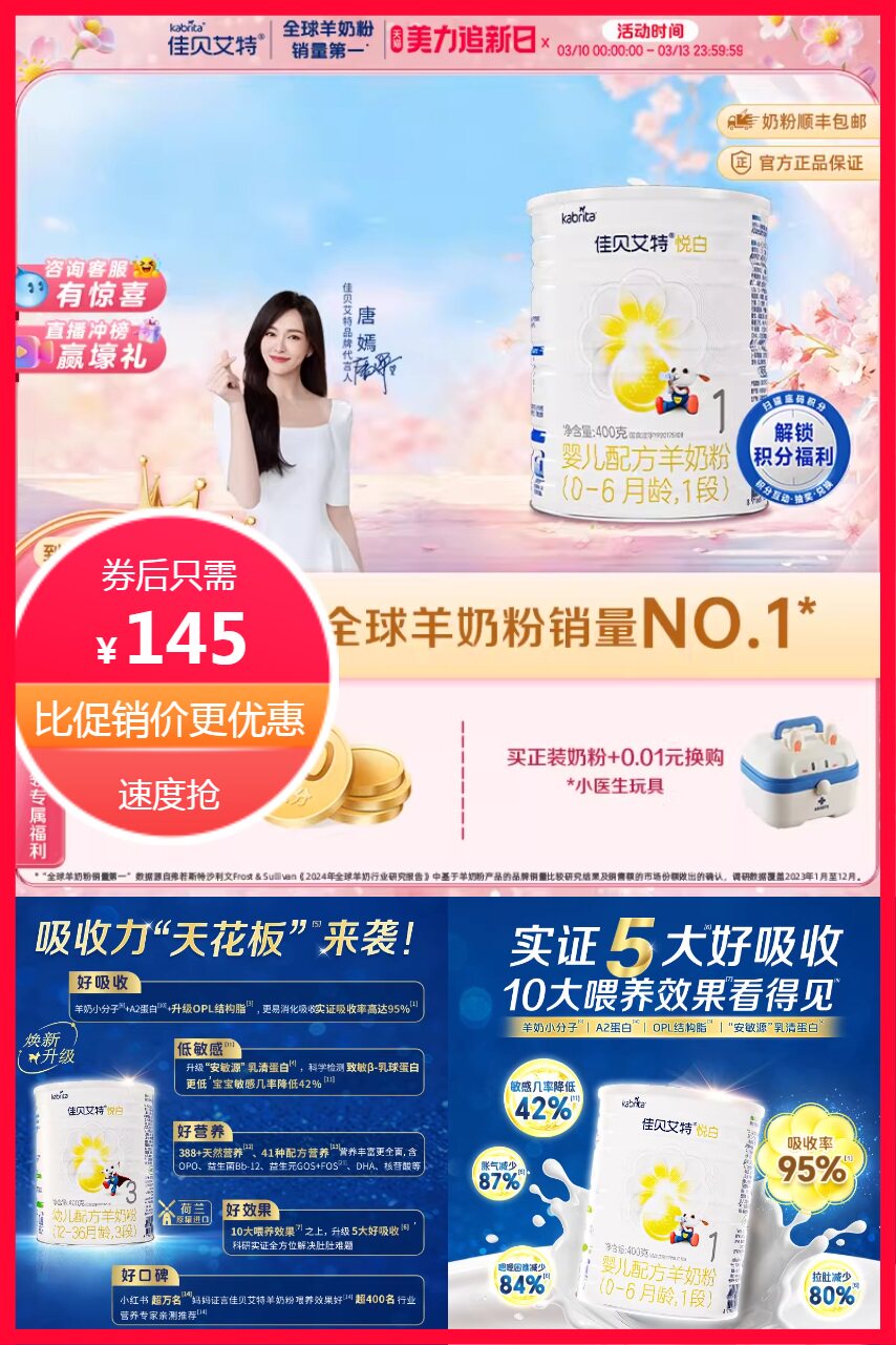 佳贝艾特婴儿羊奶粉悦白1段400g 11元减24 商品纠错