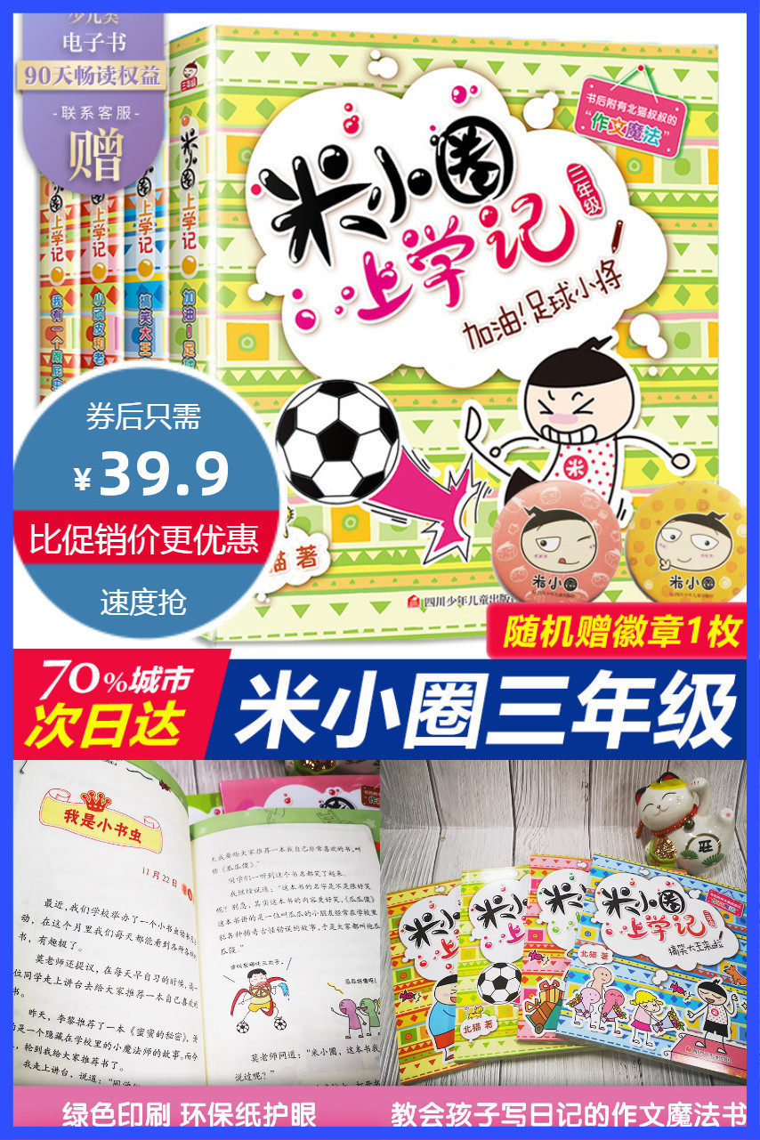 【赠徽章一枚!新华书店正版】米小圈3年级全套,超好玩的日记,超搞笑的插图,超倒霉的米小圈,贴近小学生活的校园故事,培养孩子阅读兴趣,爱上阅读从此开始!教会孩子写日记的作文魔法书!