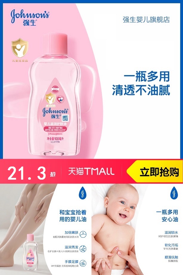 ⭕强生婴儿全身抚触按摩油润肤油100ml