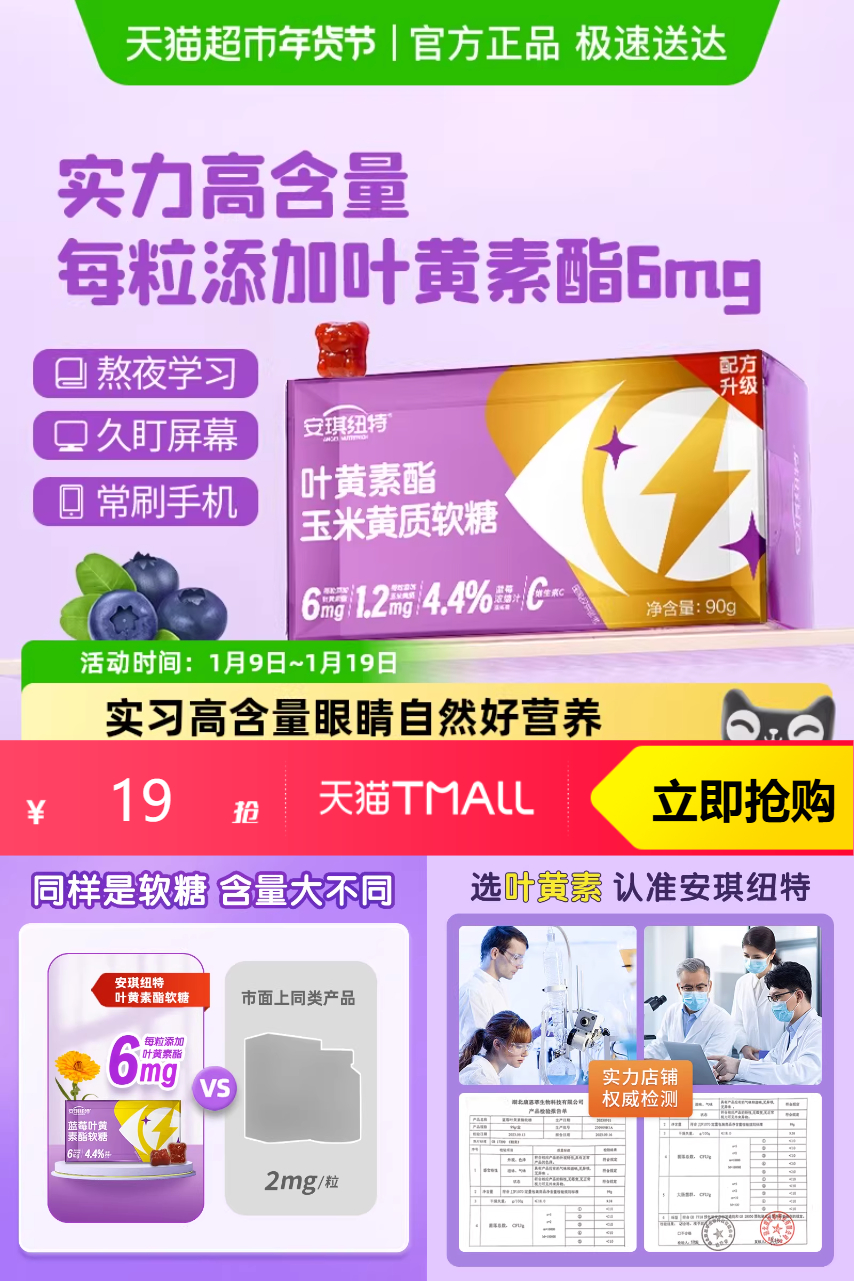 推荐:安琪纽特蓝莓叶黄素酯玉米黄质软糖90g