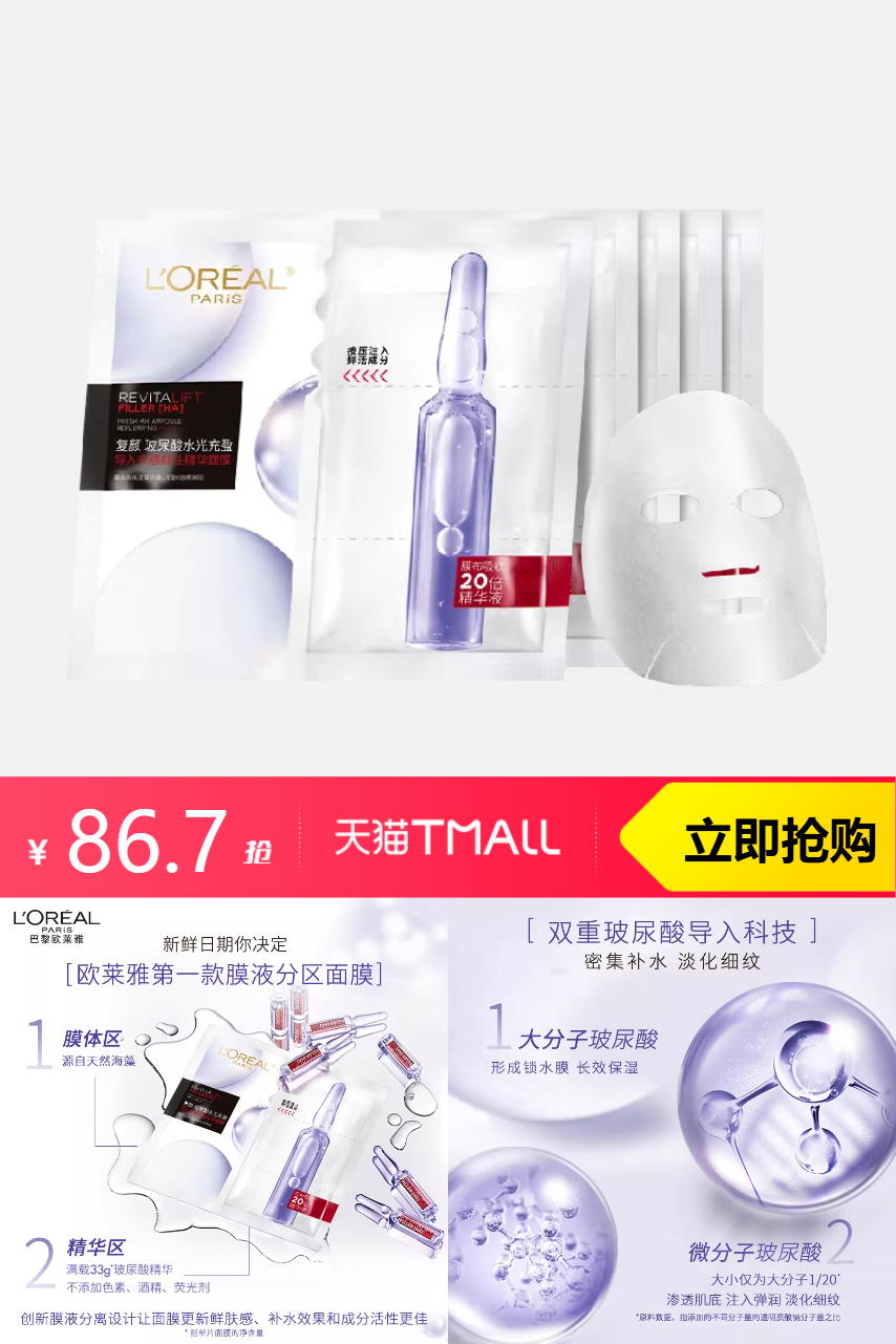 推荐:vip5.9/片欧莱雅安瓶面膜24片