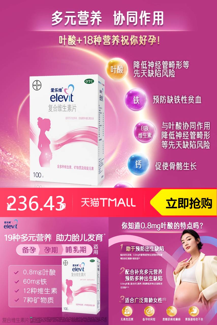 爱乐维复合维生素片叶酸片100片 348元减96.57 商品纠错