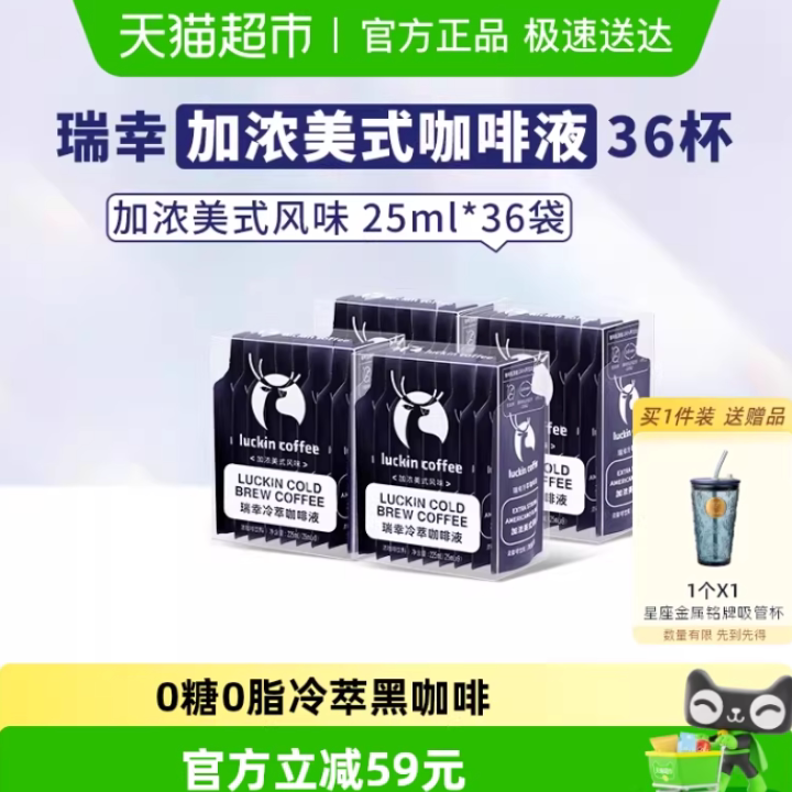 推荐:瑞幸咖啡冷萃咖啡液加浓美式风味32杯