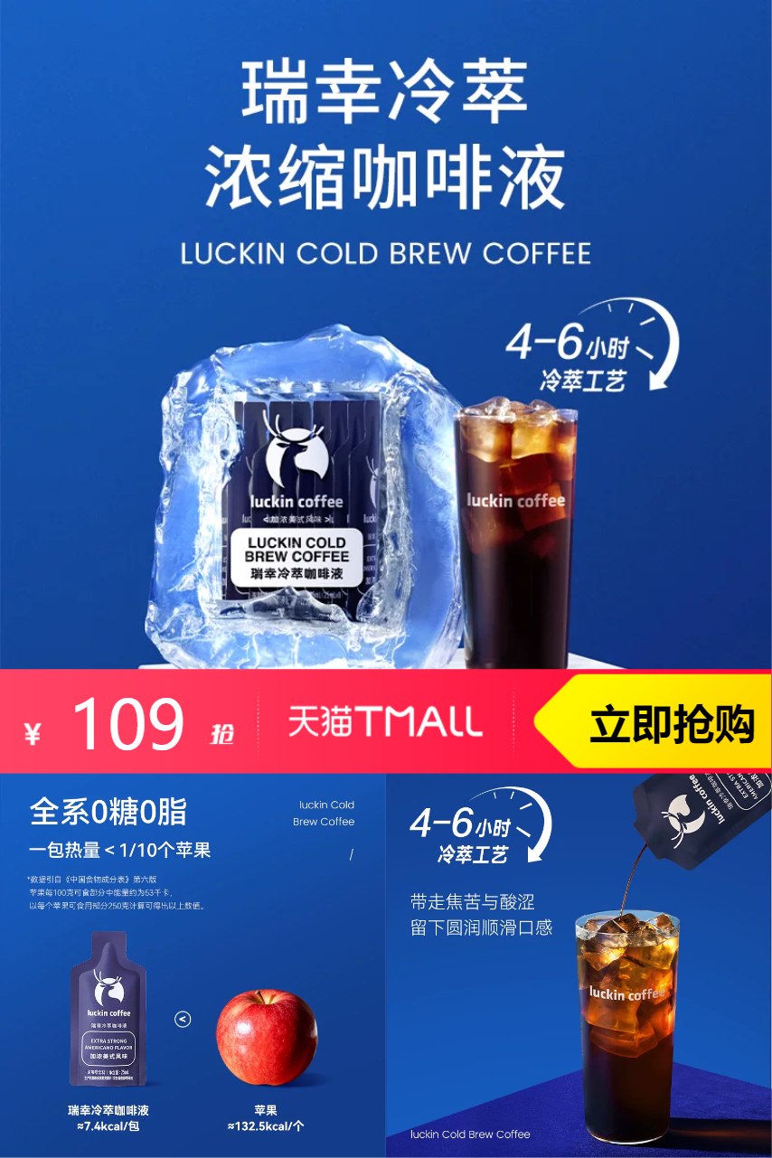 瑞幸冷萃咖啡液36杯0糖0脂,大容量尽兴喝,口感醇厚,随时随地享受现萃风味~