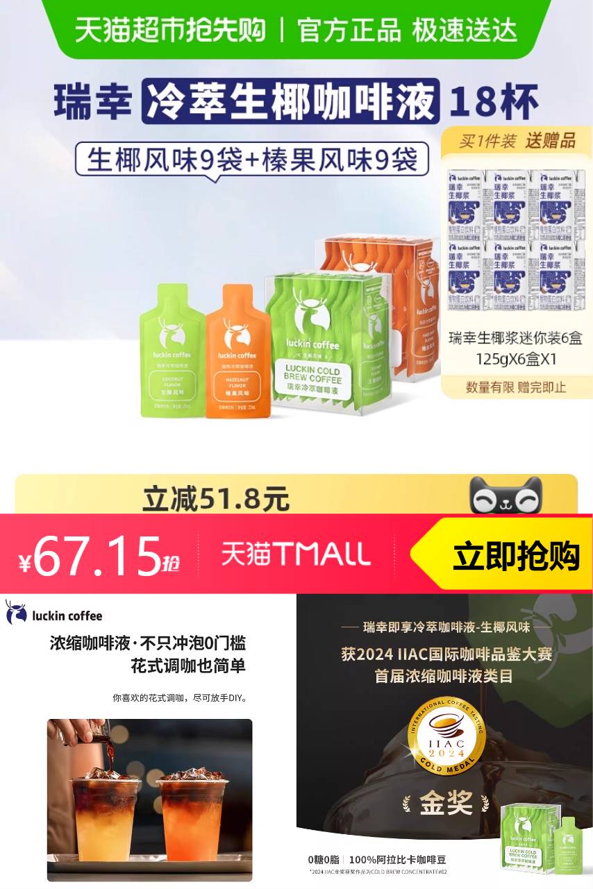 推荐:瑞幸咖啡冷萃咖啡液生椰榛果套装