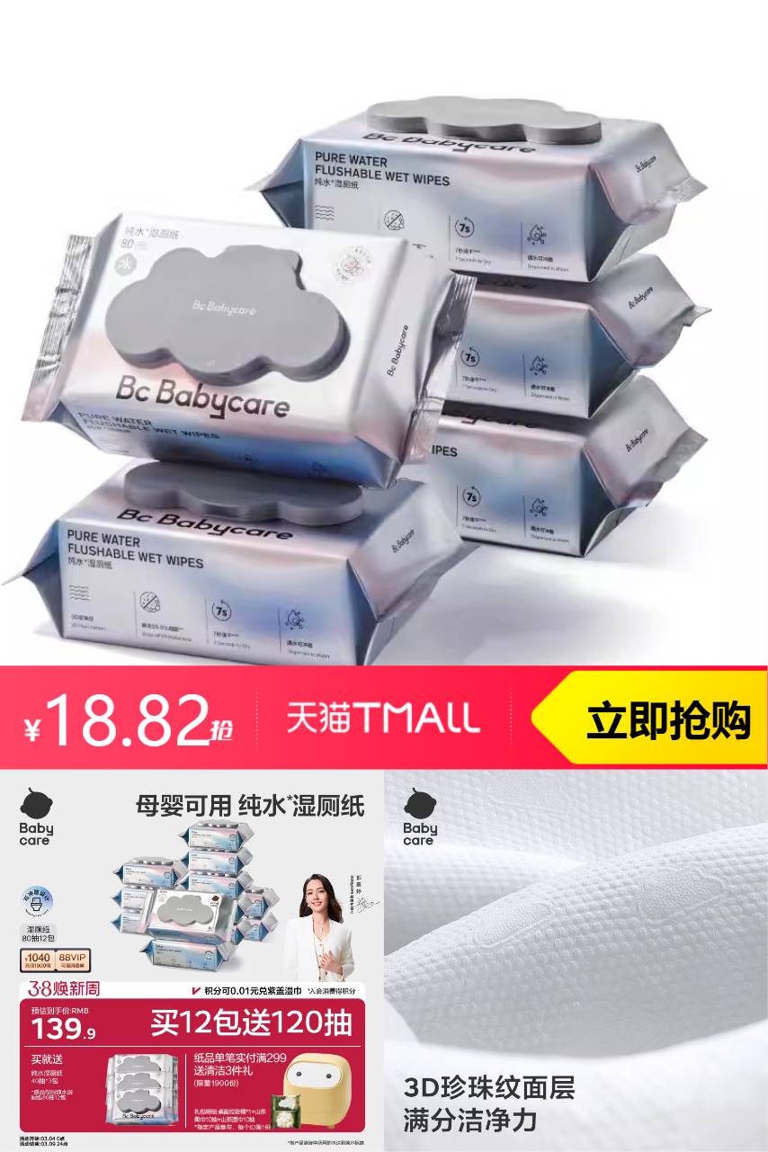 bc babycare babycare纯水湿厕纸巾40抽*3 19.9元减1.08 商品纠错
