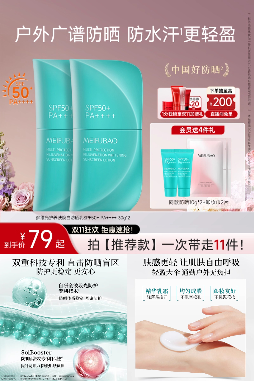 【送同款防晒10g】美肤宝大伞防晒隔离,SPF50+PA++++高倍防晒,防水防汗更耐晒,高浓精华成分,全链路养肤,肤感更轻,让肌肤自由呼吸,轻盈大伞,通勤户外无负担!