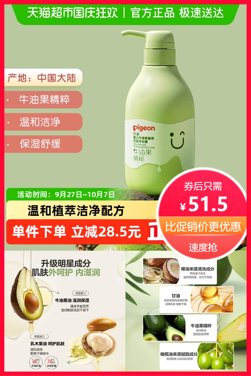 【福袋+淘金币+VIP到手约43.27】贝亲婴儿童牛油果植萃洗发沐浴露,植萃净肤,洗润合一,轻松气泡,亲肤保湿,源于自然温和洁净,柔润发丝,洗浴双效,呵护幼发,牛油果精粹全新升级,肌肤外呵护,内滋润!