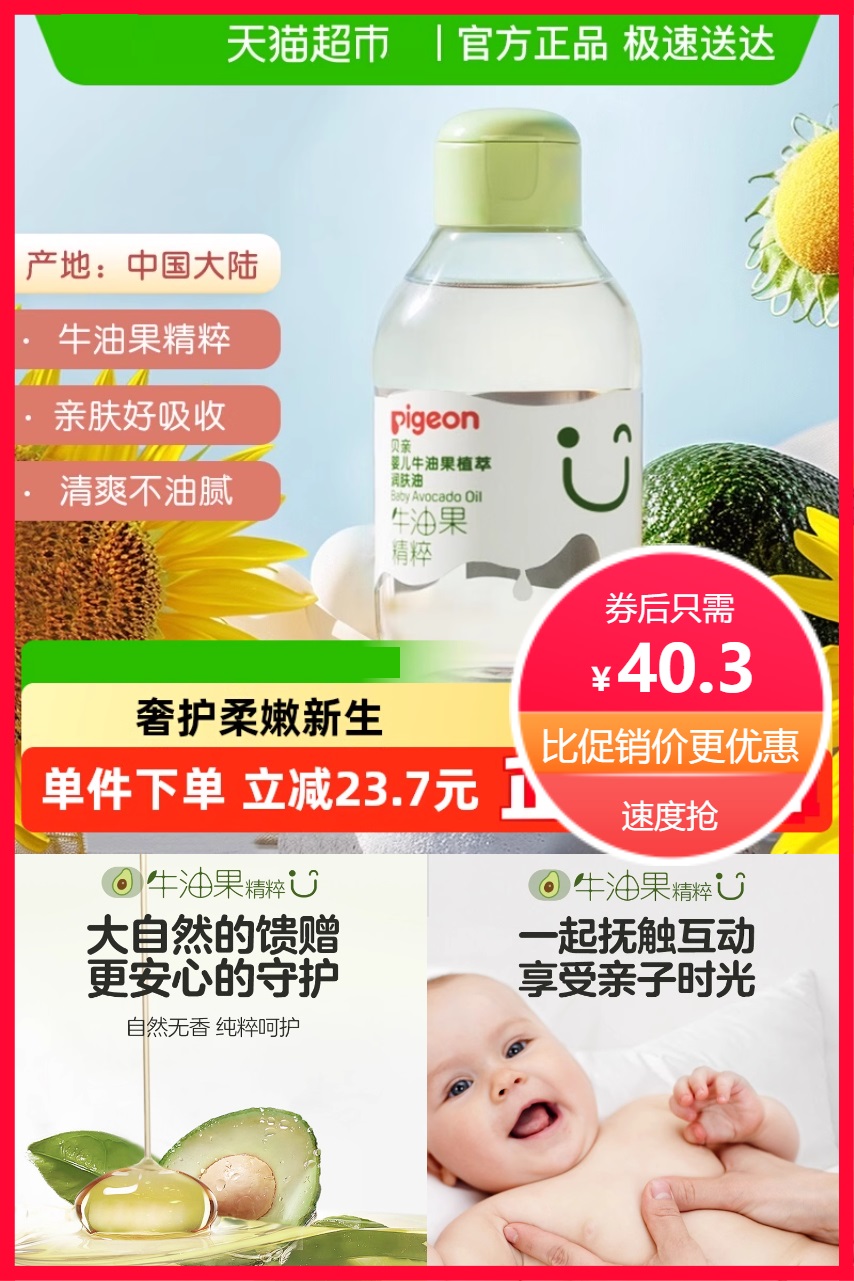 【淘金币+福袋+VIP到手约32.79】Pigeon新生儿牛油果植萃润肤油,升级双重油粹,奢护柔嫩新生,无矿油矿脂,温和更安心,保湿不油腻,添加牛油果*乳木果油成分双重油粹,高保湿滋润,亲肤好吸收,清爽不油腻!