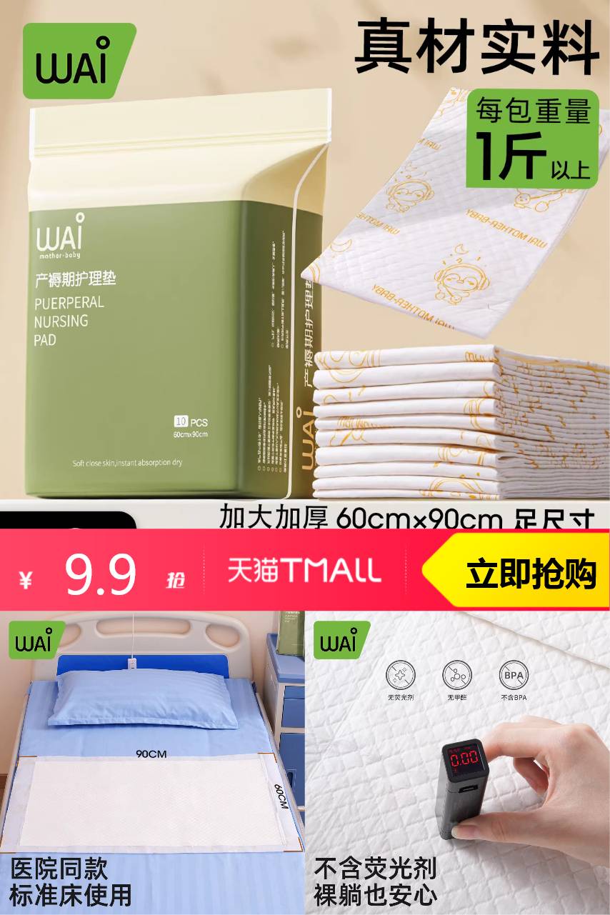 【原价9.9-淘金币0.29=到手价9.61】产褥垫产后专用医用护理隔尿垫月经垫10片,绵柔亲肤,用心选材,创新四角定位,不打滑,不位移,怎么翻身都不怕,妈妈安睡无忧!