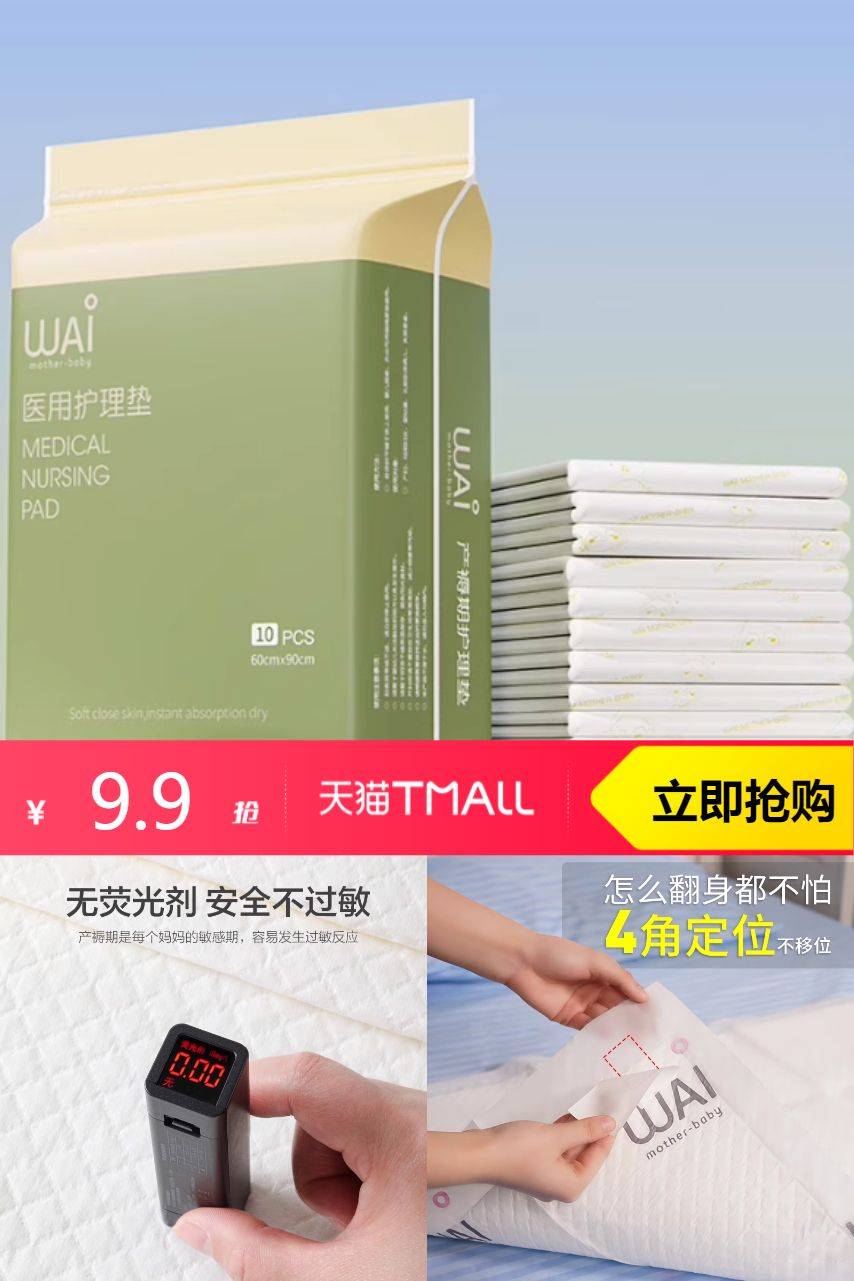 【原价9.9-百亿金刚圈0.99-淘金币0.19=到手价8.72】产褥垫产后专用医用护理隔尿垫月经垫10片,绵柔亲肤,用心选材,创新四角定位,不打滑,不位移,怎么翻身都不怕,妈妈安睡无忧!