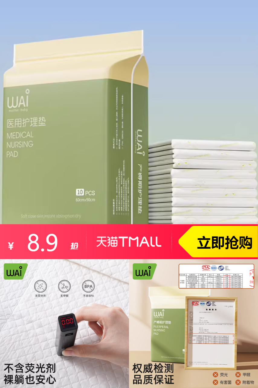 【原价8.9-淘金币0.17=到手价8.73】产褥垫产后专用医用护理隔尿垫月经垫10片,绵柔亲肤,用心选材,创新四角定位,不打滑,不位移,怎么翻身都不怕,妈妈安睡无忧!