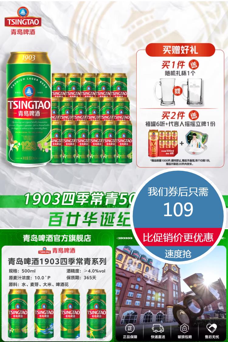 ⭕【送扎杯】青岛啤酒1903*18听