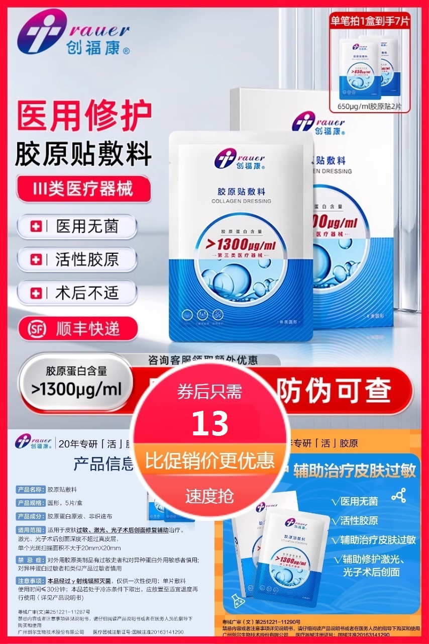 ⭕创福康胶原蛋白贴医用敷料1300浓度1片