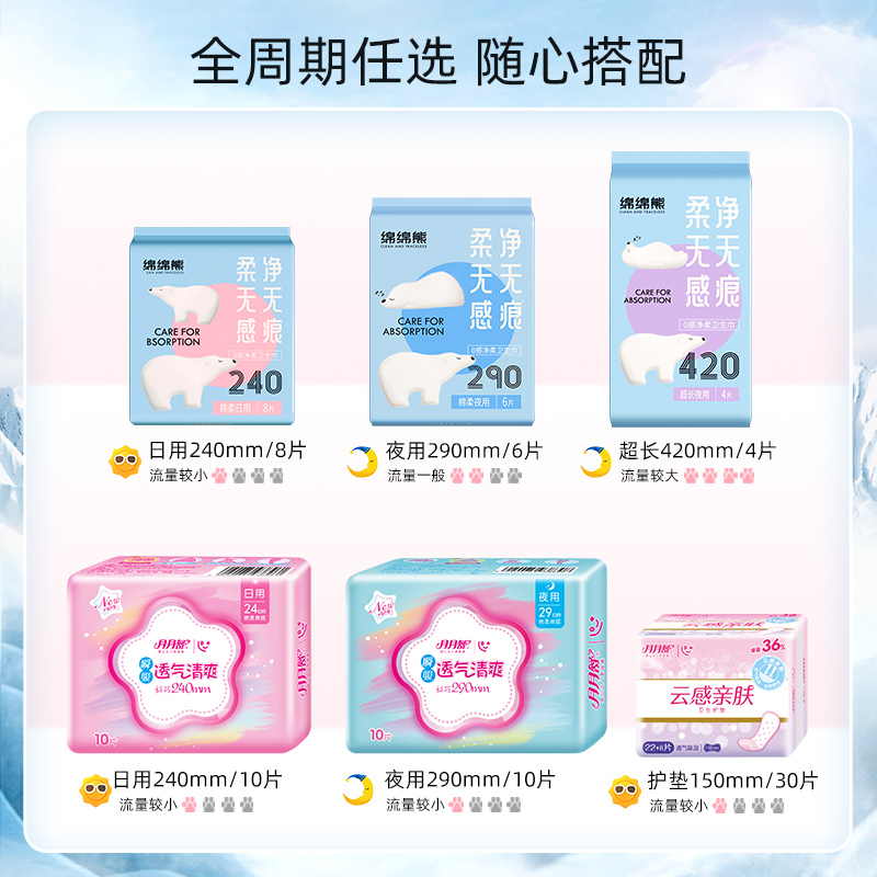 ⭕拍8!月月舒绵绵熊卫生巾240片