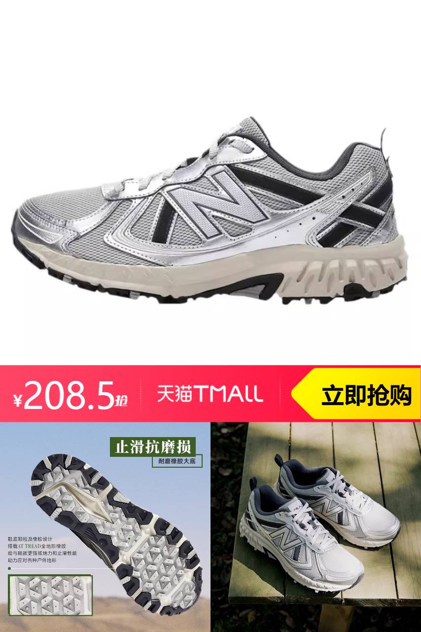 【399-60(官方立减)-26.6(户外运动品类券600-40)-52(疯4礼金红包)-28.9(9折消费券)-23(无门槛红包)=208.5】NewBalanceNB官方复古潮流百搭老爹鞋,男鞋女鞋410系列MT410KR5,拼接鞋面,潮流时尚,舒适有型,鞋领加衬设计,低调实用。