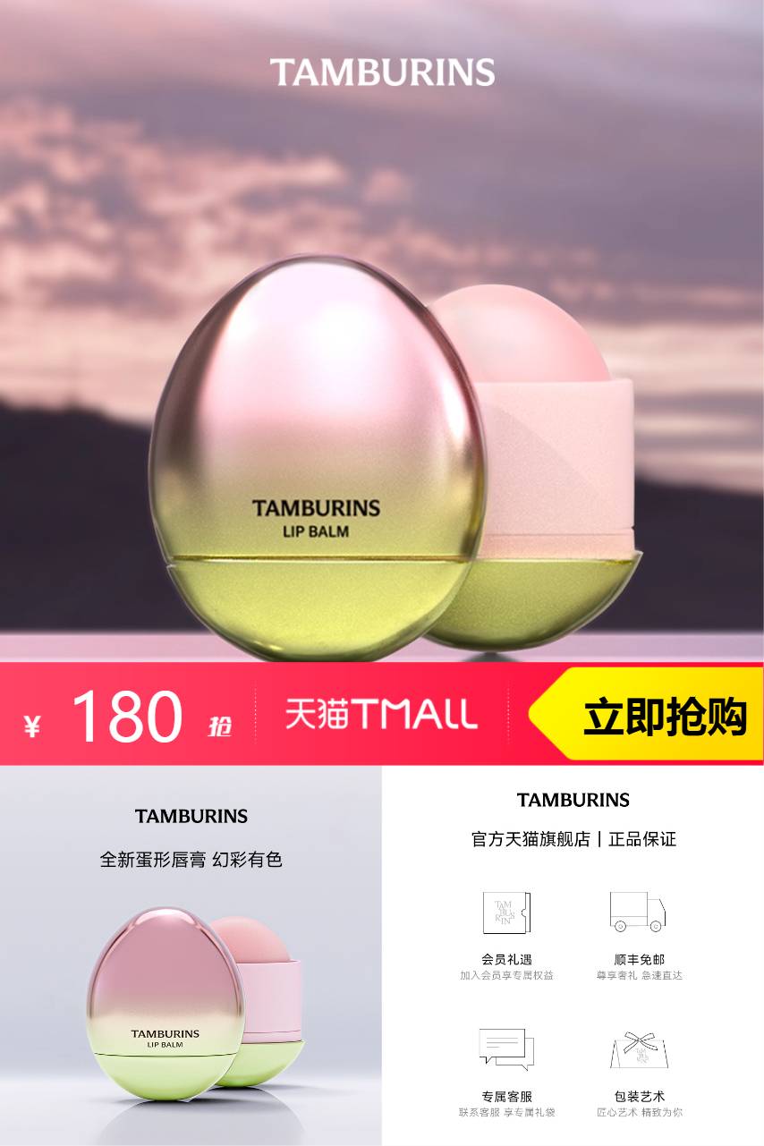 【叠加消费券】TAMBURINS蛋形唇膏玫瑰木香,持久不脱色,一整天美丽不打烊!