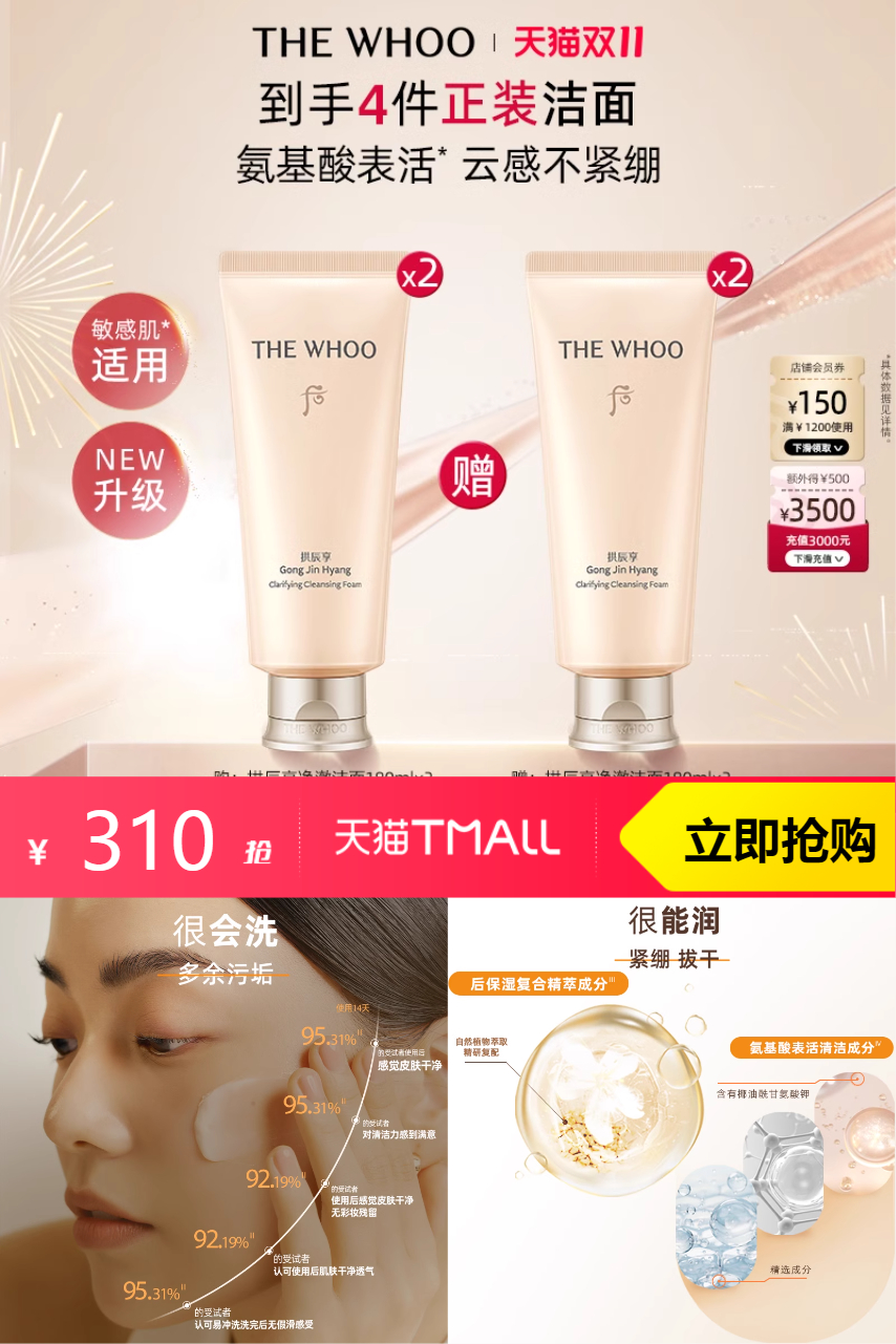 ⭕买一赠一!后拱辰享净澈洁面膏180ml